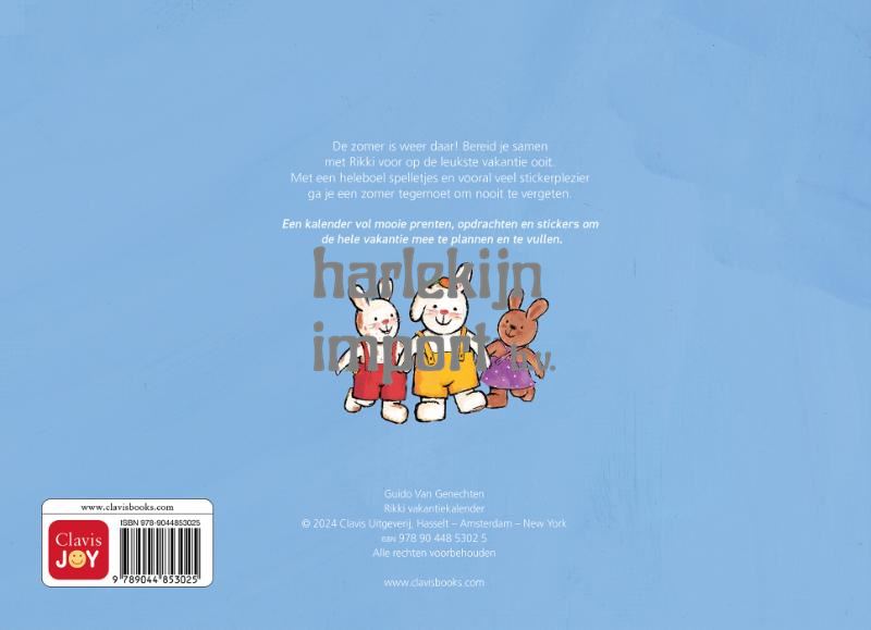 De zomer is weer daar! Bereid je samen met Rikki voor op de leukste vakantie ooit. Met een heleboel spelletjes en vooral veel stickerplezier ga je een zomer tegemoet om nooit te vergeten. Een kalender vol mooie prenten, opdrachten en stickers om de hele vakantie mee te plannen en te vullen.
