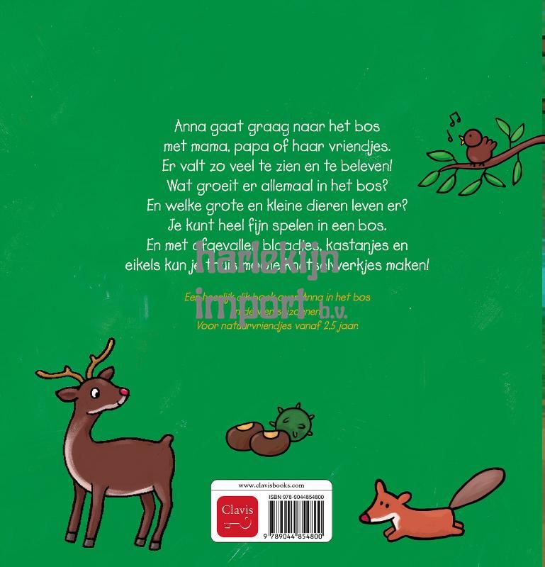 Anna gaat graag naar het bos met mama, papa of haar vriendjes. Er valt zo veel te zien en te beleven! Wat groeit er allemaal in het bos? En welke grote en kleine dieren leven er? Je kunt heel fijn spelen in een bos. En met afgevallen blaadjes, kastanjes en eikels kun je thuis mooie knutselwerkjes maken! Een heerlijk dik boek over Anna in het bos in de vier seizoenen. Voor natuurvriendjes vanaf 2,5 jaar.