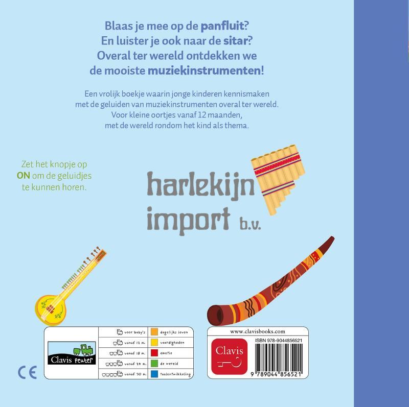 Ga je mee naar Australiƫ om de didgeridoo te beluisteren? En reizen we samen naar India om te spelen op de sitar? Overal ter wereld ontdekken we de mooiste muziekinstrumenten! Een vrolijk boekje waarin jonge kinderen kennismaken met de geluiden van muziekinstrumenten overal ter wereld. Voor kleine oortjes vanaf 12 maanden, met de wereld rondom het kind als thema.