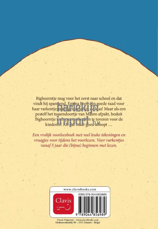 Bighoorntje mag voor het eerst naar school en dat vindt hij spannend. Emma heeft één goede raad voor haar varkentje: tover geen eten in de klas! Maar als een pestelf het tussendoortje van Mauro afpakt, besluit Bighoorntje toch pannenkoeken te toveren voor de kinderen. Als dat maar goed afloopt … Een vrolijk voorleesboek met veel leuke tekeningen en vraagjes voor tijdens het voorlezen. Voor varkentjes vanaf 5 jaar die (bijna) beginnen met lezen.