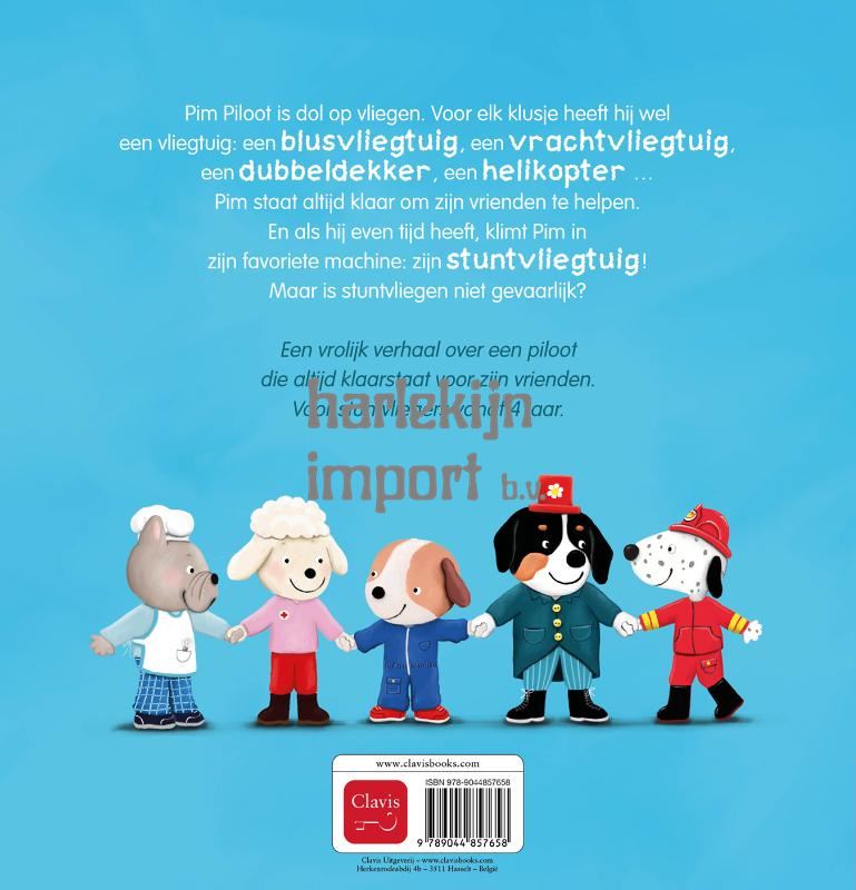 Pim Piloot is dol op vliegen. Voor elk klusje heeft hij wel een vliegtuig: een blusvliegtuig, een vrachtvliegtuig, een dubbeldekker, een helikopter … Pim staat altijd klaar om zijn vrienden te helpen. En als hij even tijd heeft, klimt Pim in zijn favoriete machine: zijn stuntvliegtuig! Maar is stuntvliegen niet gevaarlijk? Een vrolijk verhaal over een piloot die altijd klaarstaat voor zijn vrienden. Voor stuntvliegers vanaf 4 jaar.