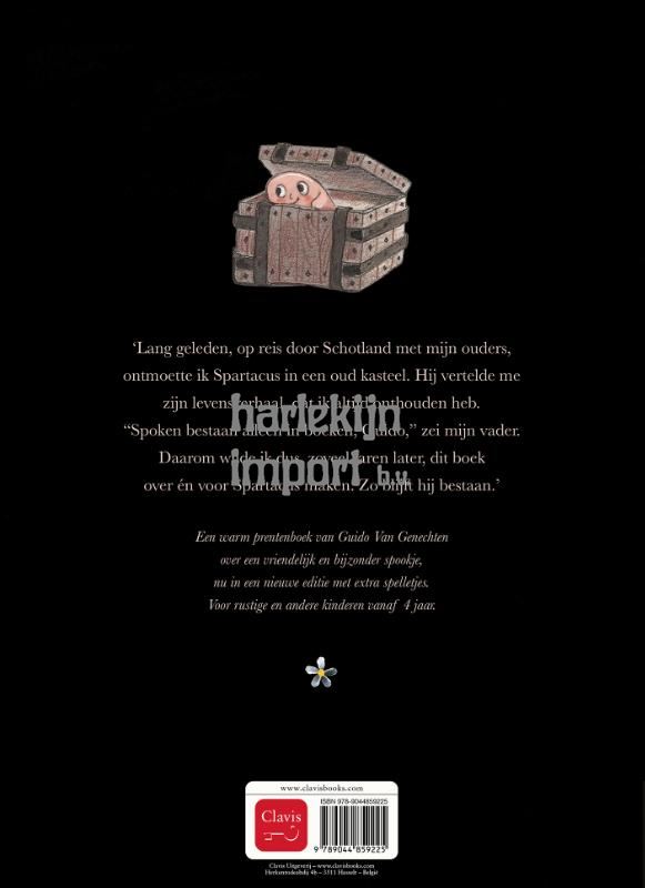 ‘Lang geleden, op reis door Schotland met mijn ouders, ontmoette ik Spartacus in een oud kasteel. Hij vertelde me zijn levensverhaal, dat ik altijd onthouden heb. “Spoken bestaan alleen in boeken, Guido,” zei mijn vader. Daarom wilde ik dus, zoveel jaren later, dit boek over én voor Spartacus maken. Zo blijft hij bestaan.’ Een warm prentenboek van Guido van Genechten over een vriendelijk en bijzonder spookje, nu in een nieuwe editie met extra spelletjes. Voor rustige en andere kinderen vanaf 4 jaar.