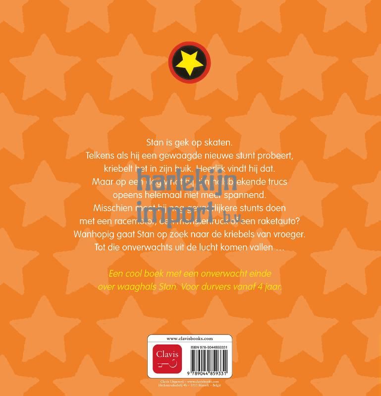 Stan is gek op skaten. Telkens als hij een gewaagde nieuwe stunt probeert, kriebelt het in zijn buik. Heerlijk vindt hij dat. Maar op een dag vindt hij zijn halsbrekende trucs opeens helemaal niet meer spannend. Misschien moet hij nog gevaarlijkere stunts doen met een racemotor, een monstertruck of een raketauto? Wanhopig gaat Stan op zoek naar de kriebels van vroeger. Tot die onverwachts uit de lucht komen vallen … Een cool boek met een onverwacht einde over waaghals Stan. Voor durvers vanaf 4 jaar.
