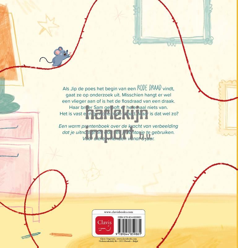 Als Jip de poes het begin van een rode draad vindt, gaat ze op onderzoek uit. Misschien hangt er wel een vlieger aan, of misschien is het de flosdraad van een draak. Haar broer Sam gelooft er helemaal niets van. Het is vast een gewone rode draad. Maar is dat wel zo? Een warm prentenboek over de kracht van verbeelding. Voor dierenvrienden vanaf 5 jaar.