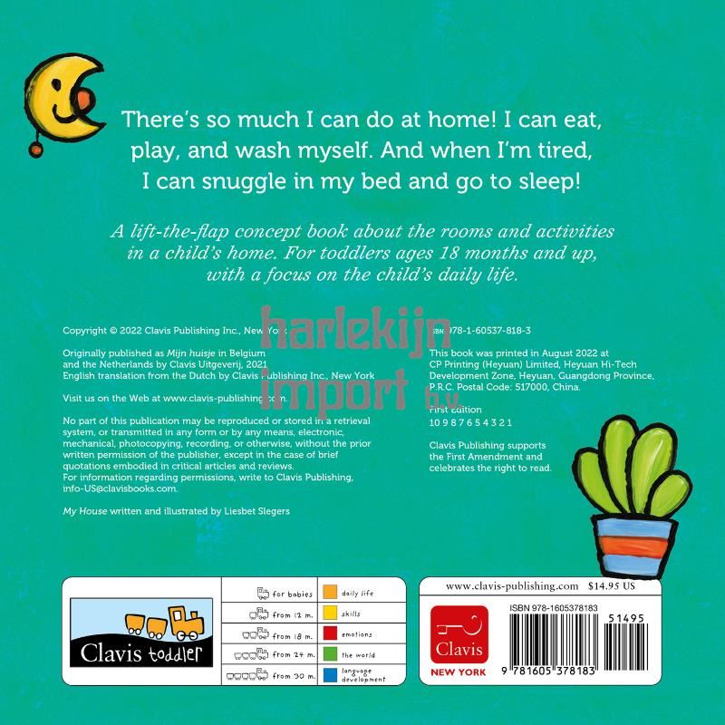 There’s so much I can do at home! I can eat, play, and wash myself. And when I’m tired, I can snuggle in my bed and go to sleep! A lift-the-flap concept book about the rooms and activities in a child’s home. For toddlers ages 18 months and up, with a focus on daily life.