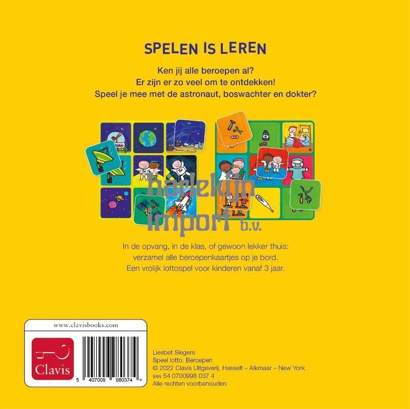 Ken jij alle beroepen al? Er zijn er zo veel om te ontdekken! Speel je mee met de astronaut, boswachter en dokter? In de opvang, in de klas, of gewoon lekker thuis: verzamel alle beroepenkaartjes op je bord. Een vrolijk lottospel voor kinderen vanaf 3 jaar.