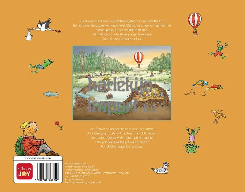 Ga samen met Bever op ontdekkingstocht in een luchtballon! Een uitdagende puzzel van maar liefst 300 stukjes, leuk om samen met mama, papa, juf of meester te maken. Lukt het jou om alle stukjes goed te leggen? Voor kinderen vanaf vier jaar.