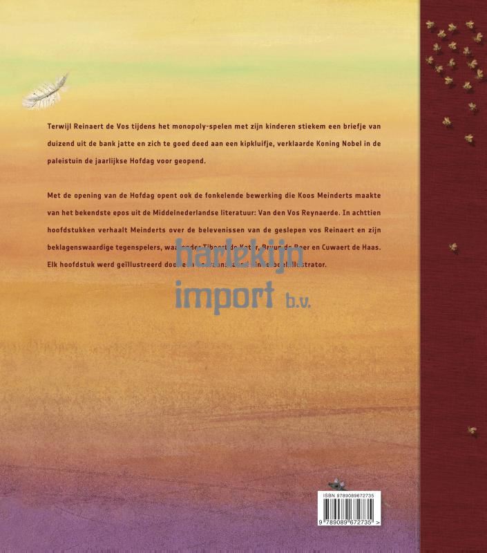 Terwijl Reinaert de Vos tijdens het monopoly-spelen met zijn kinderen stiekem een briefje van duizend uit de bank jatte en zich te goed deed aan een kipkluifje, verklaarde Koning Nobel in de paleistuin de jaarlijkse Hofdag voor geopend. Met de opening van de Hofdag opent ook de fonkelende bewerking die Koos Meinderts maakte van het bekendste epos uit de Middelnederlandse literatuur: Van den Vos Reynaerde. In achttien hoofdstukken verhaalt Meinderts over de belevenissen van de geslepen vos Reinaert en zijn beklagenswaardige tegenspelers, waaronder Tibeert de Kater, Bruun de Beer en Cuwaert de Haas. Elk hoofdstuk werd geïllustreerd door een vooraanstaand kinderboekillustrator.