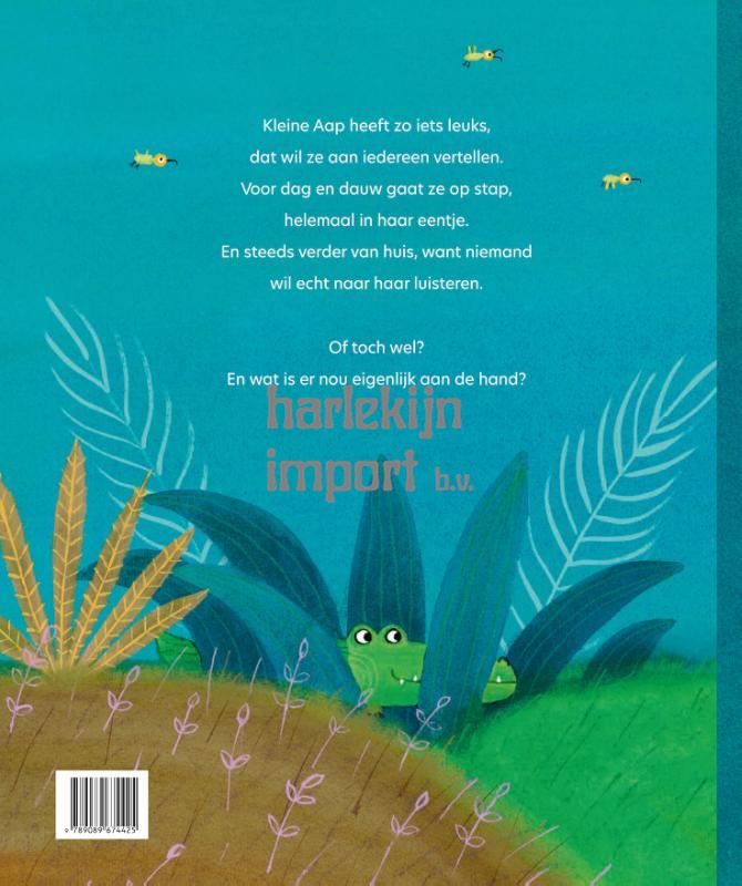 Kleine Aap heeft zó iets leuks, dat wil ze aan iedereen vertellen. Voor dag en dauw gaat ze op stap, helemaal in haar eentje. En steeds verder van huis, want niemand wil echt naar haar luisteren. Of toch wel? En wat is er nou eigenlijk aan de hand? * PRENTENBOEK VAN HET JAAR 2026 * Om het voorlezen nog gezelliger en interactiever te maken, nu ook in combinatie met de schattige Kleine Aap voorleesknuffel.