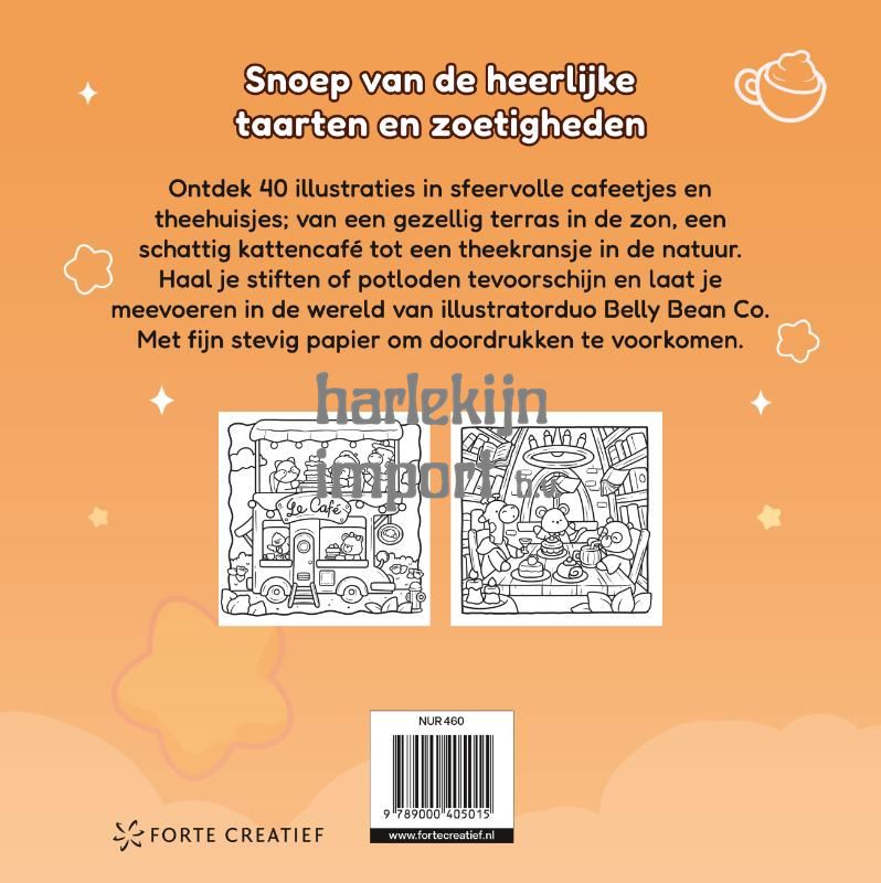 Hét kleurboek met extra dik papier – comfy kleuren in de bakkerij met de cozy tekeningen van illustratorduo Belly Bean Co. Snoep van de heerlijke taarten en zoetigheden met 40 illustraties in sfeervolle cafeetjes en theehuisjes; van een gezellig terras in de zon, een schattig kattencafé tot een theekransje in de natuur. Haal je stiften of potloden tevoorschijn en laat je in dit kleurboek meevoeren in de wereld van illustratorduo Belly Bean Co. Met fijn stevig papier om doordrukken te voorkomen. In welke stemming je ook bent, er is een kleurboek voor iedereen! Ook in deze serie: Cozy & cute op de boerderij en Cozy & cute in het atelier Belly Bean Co. is een gepassioneerd duo illustrators. In al hun ontwerpen stoppen zij vrolijkheid en creativiteit. In hun kleurboeken staat op elke pagina niet zomaar een tekening, maar een verhaal dat er op wacht om te worden ingekleurd.