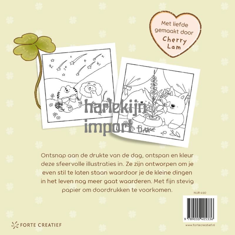 Hét kleurboek met extra dik papier – herontdek het plezier van kleuren met de cozy tekeningen van de Australische illustrator Cherry Lam Begin aan een nieuwe gezellige, creatieve hobby! Dit kleurboek bevat meer dan 40 eenvoudige kleurplaten, met gezellige vibes, schattige figuren in sfeervolle settings die je even stil laten staan ??om de kleine dingen in het leven te waarderen. Met enkelzijdige pagina’s van stevig papier om doordrukken te voorkomen, heb je alleen je favoriete potloden of stiften nodig om aan de slag te gaan. Cozy charm is hét kleurboek vol schattige tekeningen over geluksmomentjes! Een zoektocht naar het klavertjevier, een tafel vol taartjes en lekker samen springen in een regenplas. Of je nu deel uitmaakt van de kleurcommunity op TikTok of op zoek bent naar een leuke activiteit zonder scherm, Cozy charm is ideaal voor iedereen die op zoek is naar momenten van artistieke mindfulness. Met fijn stevig papier om doordrukken te voorkomen. In welke stemming je ook bent, er is een kleurboek voor iedereen! Ook in deze serie: Cozy calm, Cozy creepy, Cozy chill, Cozy cheer en Cozy cupid. Cherry Lam is een illustrator, die begon met het delen van haar tekeningen op haar online accounts tijdens de coronapandemie. Cherry heeft wereldwijd fans verzameld met haar schattige illustraties, strips van haar originele personages, schattige merchandise en vlogs waarin ze een kijkje achter de schermen geeft. Met haar kleurboeken hoopt Cherry haar sfeervolle tekeningen nog verder te verspreiden, mensen uit te nodigen om creatief aan de slag te gaan en daar volop plezier aan te beleven.