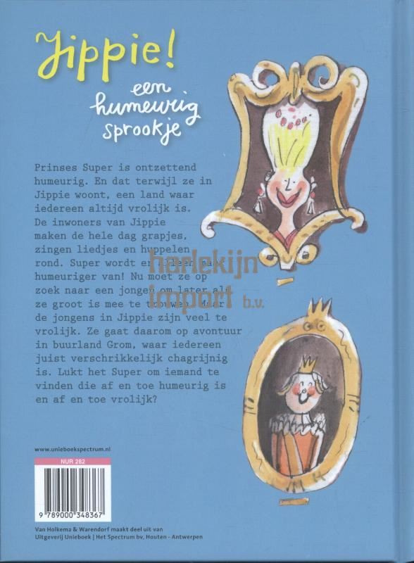Prinses Super is ontzettend humeurig. En dat terwijl ze in Jippie woont, een land waar iedereen altijd vrolijk is. De inwoners van Jippie maken de hele dag grapjes, zingen liedjes en huppelen rond. Super wordt er alleen maar humeuriger van! Nu moet ze op zoek naar een jongen om later als ze groot is mee te trouwen. Maar de jongens in Jippie zijn veel te vrolijk. Ze gaat daarom op avontuur in buurland Grom, waar ieder een juist verschrikkelijk chagrijnig is. Lukt het Super om iemand te vinden die af en toe humeurig is en af en toe vrolijk?