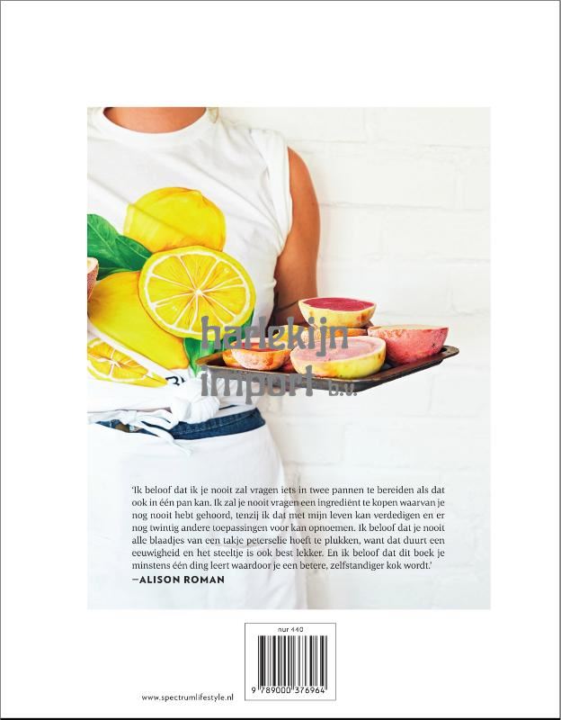 Alison Roman weet bij uitstek hoe het is om óf voor jezelf te koken óf voor een groep vrienden. Daar wil je niet de hele dag voor in de keuken staan en al helemaal niet langs zes verschillende winkels moeten. Bij Roman weet je: je komt een heel eind met de vertrouwde producten die je toch al in huis hebt. Met Roman in huis heb je geen restaurant meer nodig.