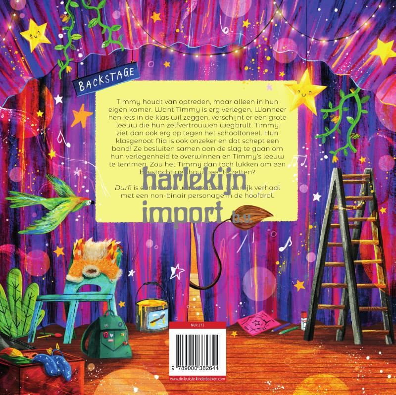 Een nieuw kleurrijk prentenboek van Harry Woodgate met een belangrijke boodschap Durf! is een van de allereerste prentenboeken met een non-binair personage in de hoofdrol.