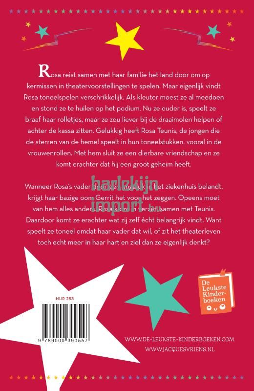 De nieuwe Vriens over een reizend theater Rosa reist samen met haar familie het land door om op kermissen in theatervoorstellingen te spelen. Maar eigenlijk vindt Rosa toneelspelen verschrikkelijk. Als kleuter moest ze al meedoen en stond ze te huilen op het podium. Nu ze ouder is, speelt ze braaf haar rolletjes, maar ze zou liever bij de draaimolen helpen of achter de kassa zitten. Gelukkig heeft Rosa Teunis, de zeventienjarige jongen die de sterren van de hemel speelt in hun toneelstukken, vooral in de vrouwenrollen. Met hem sluit ze een dierbare vriendschap en ze komt erachter dat hij een groot geheim heeft.Maar dan krijgt Rosa's vader een ongeluk. Oom Gerrit neemt de leiding over en gedraagt zich als een tiran. Wanneer hij Teunis wil ontslaan, komt Rosa met haar vriend in actie. Zo ontdekt Rosa dat ze toch meer voelt voor het theater dan ze wil toegeven. Lukt het Rosa en Teunis om oom Gerrit te stoppen? Kermiskind is het nieuwe kinderboek van Jacques Vriens voor kinderen vanaf 10 jaar. Een prachtig historisch verhaal over een reizend theatergezelschap dat zich afspeelt op een kermis rond 1920. Als geen ander weet meesterverteller Jacques Vriens de geschiedenis van de jaren 20 tot leven te brengen voor de jonge lezer.