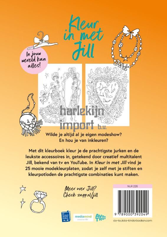 Hou je van kleuren? Dan is het nieuwe kleurboek van Jill (bekend van tv en YouTube) echt iets voor jou. In Kleur in met Jill vind je 25 te gekke fashion-kleurplaten. Of het nou een zwierige droomjurk, een mooie hak met toffe strik of een geweldige handtas is - jij geeft alle outfits een topdesign.Pak snel je stiften, kleurpotloden en glitters en leef je uit met dit fantastische kleurboek.Kleur in met Jill van Jill Schirnhofer is de must-have voor jonge modefanaten vanaf 7 jaar die gek zijn op kleuren en kleurboeken. Ook heel leuk om cadeau te geven!
