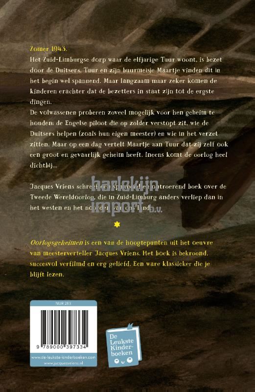 Een Vriens-klassieker opnieuw uitgebracht, ter ere van 80 jaar vrijheid'Oorlogsgeheimen' is een van de hoogtepunten uit het oeuvre van meesterverteller Jacques Vriens. In 2025 vieren we 80 jaar vrijheid: een prachtige aanleiding om het geliefde verhaal van Tuur en Maartje opnieuw uit te brengen in een hardcoveruitgave met prachtig nieuw omslag.Het Zuid-Limburgse dorp waar de elfjarige Tuur woont, is bezet door de Duitsers. Tuur en zijn buurmeisje Maartje vinden het in het begin wel spannend. Langzaam maar zeker komen de kinderen erachter dat de bezetters in staat zijn tot de ergste dingen. De volwassenen proberen zoveel mogelijk voor hen geheim te houden: de Engelse piloot die op zolder verstopt zit, wie de Duitsers helpen (zoals hun eigen meester) en wie in het verzet zit. Maar op een dag vertelt Maartje aan Tuur dat zij zelf ook een groot en gevaarlijk geheim heeft. Ineens komt de oorlog heel dichtbij...'Oorlogsgeheimen' is een ware klassieker en everseller: een prachtig kinderboek over de Tweede Wereldoorlog in Limburg om zelf te lezen vanaf 10 jaar. Er werden al meer dan 100.000 exemplaren van verkocht en het boek werd verfilmd. Mark Janssen maakte het prachtige omslag.
