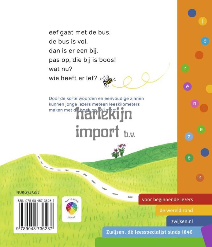 Een aantrekkelijk eerste leesboek op AVI start, speciaal voor kinderen die net leren lezen. Door de korte woorden en eenvoudige zinnen in wat een lef! kunnen beginnende lezers meteen leeskilometers maken.eef gaat met de bus.de bus is vol.dan is er een bij.pas op, die bij is boos!wat nu?wie heeft er lef?
