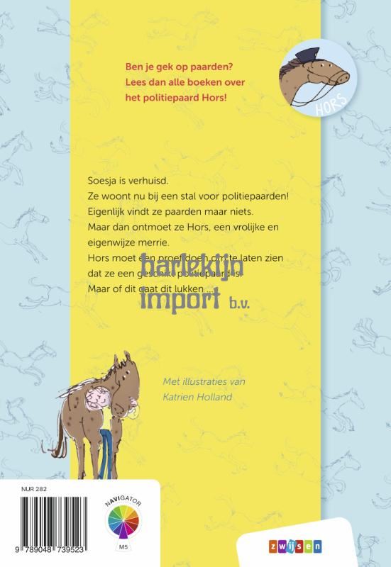 Stoere paardenserie op AVI M5 over het eigenzinnige politiepaard Hors. In dit eerste deel lees je waarom Soesja bij de politiepaardenstal komt wonen en hoe het Hors is gelukt om politiepaard te worden. Dat is namelijk nog niet zo makkelijk. Leuk om te lezen voor iedere jonge paardengek!