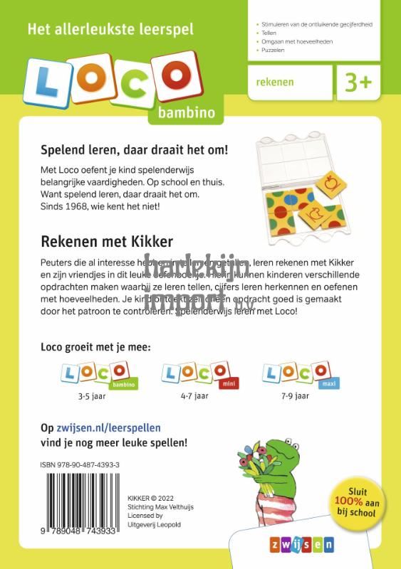 Samen met Kikker kijken, zoeken en ontdekken! In dit kleurrijke Loco oefenboekje leren kinderen spelenderwijs voorwerpen te tellen, hoeveelheden te vergelijken en ze maken kennis met cijfers. Hiermee wordt de ontluikende gecijferdheid gestimuleerd. Een kind kan alleen aan de slag of met een beetje hulp. Benieuwd of een puzzel goed is gemaakt? Je kind ontdekt het zélf door de basisdoos om te draaien en het bolletjespatroon te controleren.