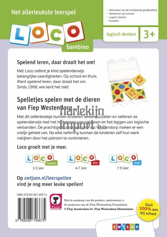 Met dit kleurrijke oefenboekje kunnen kinderen lekker puzzelen en oefenen ze spelenderwijs met het herkennen van patronen en het leggen van logische verbanden. De prachtige illustraties van Fiep Westendorp maken er een vrolijk geheel van. Na elke oefening kunnen de kinderen zelf hun puzzels nakijken door de doos om te draaien en het patroon te controleren.
