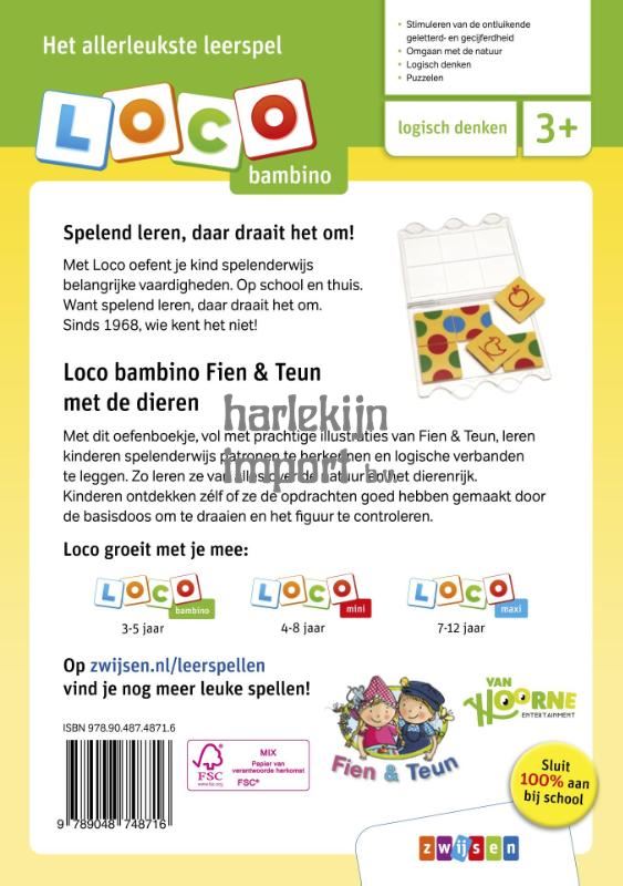 Met dit vrolijke oefenboekje kunnen peuters en kleuters lekker puzzelen. Spelenderwijs herkennen ze patronen en leggen ze logische verbanden. Al spelend leren kinderen bovendien van alles over de natuur en het dierenrijk. De prachtige illustraties van Fien & Teun op hun avonturenboerderij maken er een kleurrijk geheel van en prikkelen de fantasie. Kinderen ontdekken zélf of ze de opdrachten goed hebben gemaakt door de basisdoos om te draaien en het figuur te controleren. Spelend leren, daar draait het om bij Loco!