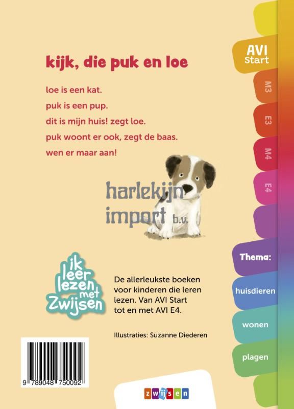 Grappig dierenverhaal over kat Loe. Hij heeft een heerlijk leventje totdat er opeens een nieuwe huisgenoot komt: een pup met de naam Puk. Loe laat Puk niet zomaar in zijn leven toe. Voor beginnende lezers op AVI Start.loe is een kat.puk is een pup.dit is mijn huis! zegt loe.puk woont er ook, zegt de baas.wen er maar aan!