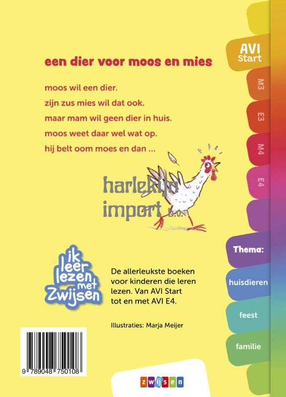 Moos en Mies zijn bijna jarig en willen allebei een dier voor hun verjaardag. Maar dat wil mama echt niet cadeau geven! Dan staat hun oom voor de deur met een mooi cadeau, en er komt nog meer bezoek met mooie cadeaus … Een verjaardag vol verrassingen! Heerlijk verhaal voor beginnende lezers op AVI Start.moos wil een dier.zijn zus mies wil dat ook.maar mam wil geen dier in huis.moos weet daar wel wat op.hij belt oom moes en dan …