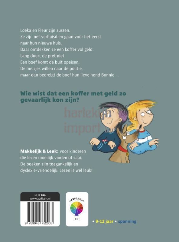Pip en Jackie zijn zussen. Hun moeder en vader zijn net gescheiden. Gelukkig hebben ze veel steun aan elkaar. Hun vader is verhuisd. Ze gaan voor het eerst naar zijn nieuwe huis. Daar ontdekken ze een verborgen schat. Een koffer vol geld. Meer dan een miljoen euro. Wat nu? Wat zou jij doen met een miljoen? Pip en Jackie vinden een koffer vol geld in het nieuwe huis van hun vader. Hoe komt dat geld daar en van wie is het? Je komt erachter in het boek ‘Buit gevonden’ uit de ‘Makkelijk en Leuk’ serie geschreven door Dirk Nielandt. Dit boek op AVI E5-niveau maakt lezen leuk voor kinderen van 9 tot 12 jaar met dyslexie of leesproblemen. Een spannend verhaal zorgt dat je wil blijven doorlezen, want hoe loopt het nou toch af met die koffer met geld? De illustraties van Richard Verschraagen trekken je nog verder mee in dit avontuur.