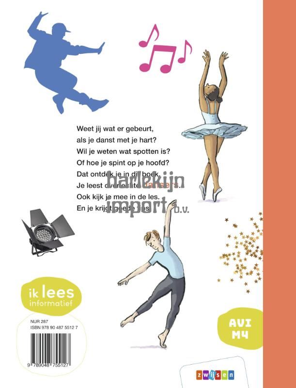 Weet jij wat er gebeurt, als je danst met je hart? Wil je weten wat spotten is? Of hoe je spint op je hoofd? Dat ontdek je in dit boek. Je leest over echte dansers. Ook kijk je mee in de les. En je krijgt goede tips! Bij sommige liedjes kun je niet stil blijven zitten, je gaat vanzelf bewegen. Dansen maakt je vrolijk en blij. In dit boek vertellen echte dansers over hun vak. En je krijgt tips van kinderen en hun dansleraren, over hun favoriete danssoort en -technieken. Zo leer je hoe je zelf nog beter kunt dansen! Dit boek is speciaal geschreven voor dansers en danseressen in de dop. De heldere uitleg, aangevuld met mooie foto’s en leuke tekeningen, maken van beginnende lezers echte dansexperts.