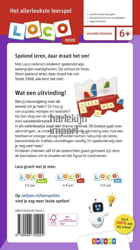 Een telefoon maken, hoe kom je erop? Wie bedacht dat briljante idee? En hoe werkte die eerste telefoon? Nieuwsgierige kinderen van 6-8 jaar krijgen geen genoeg van dit leerzame Loco mini oefenboek. De uitnodigende puzzels en opdrachten loodsen hen langs slimme, knappe en maffe uitvindingen. Spelenderwijs leren met Loco is zelf leren! Kies welk raadsel je op wilt lossen, maak de opdracht en draai de basisdoos om. Misschien brengt het je wel op een idee voor een eigen uitvinding? Dit oefenboekje is te gebruiken bij de Loco mini basisdoos. Deze basisdoos is los te bestellen. Leerdoelen: •Leer de wereld begrijpen •Ontwikkel kennis en vaardigheden •Logisch denken Met het zelfcorrigerende Loco oefent je kind spelenderwijs belangrijke vaardigheden. Op school en thuis. Want spelend leren, daar draait het om. Sinds 1968, wie kent het niet!