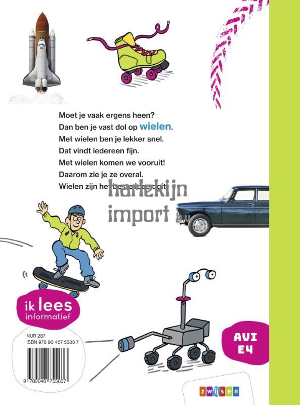 Moet je vaak ergens heen? Dan ben je vast dol op wielen. Met wielen ben je lekker snel. Dat vindt iedereen fijn. Met wielen komen we vooruit! Daarom zie je ze overal. Wielen zijn het beste idee ooit! In dit vrolijke en leerzame boek ontdekken beginnende lezers hoe mensen zich vroeger voortbewogen. Er waren vroeger geen wielen, en dus ook geen fietsen of auto’s! Mensen bedenken steeds nieuwe voertuigen. Ze bouwen raketten om mee naar de ruimte te gaan en maken supersnelle treinen. Van het eerste wiel tot elektrische auto's, in dit boek zie je hoe voertuigen steeds slimmer en sneller werden. Met grappige weetjes, raadsels, moppen, foto’s en kleurrijke illustraties wordt leren een feestje. Vooruit op wielen! is geschreven op AVI E4-niveau en hoort bij de serie ik lees informatief.