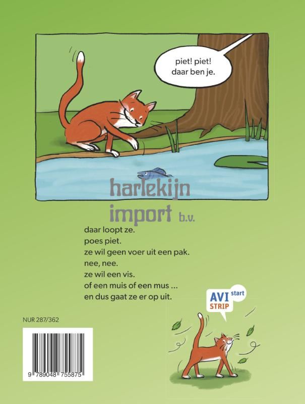 daar loopt ze. poes piet. ze wil geen voer uit een pak. nee, nee. ze wil een vis. of een muis of een mus … en dus gaat ze er op uit. Dat poezen eigenwijs zijn is een feit. Maar Poes Piet is wel heel eigenwijs! In dit stoere stripboek gaat ze op zoek naar lekker eten. Echt lekker eten. Piet heeft genoeg van die droge brokjes en heeft zin in een sappige vis of een malse muis. En dus loopt ze weg … haar buikje rammelt al! AVI Strips zijn stripboeken die speciaal geschreven zijn voor beginnende lezers. De grappige illustraties van brutale Poes Piet, getekend door Silvie Buenen, laten het verhaal echt tot leven komen. Het fijne aan stripboeken is dat tekst en beeld elkaar versterken. Zo leren kinderen makkelijk nieuwe woorden, want de illustraties helpen hen daarbij. Dat is nog eens een leuke manier om te oefenen met lezen! Ga mee op avontuur met Poes Piet en ontdek wat er buiten haar veilige huis allemaal te beleven valt. Leesniveau: AVI Start