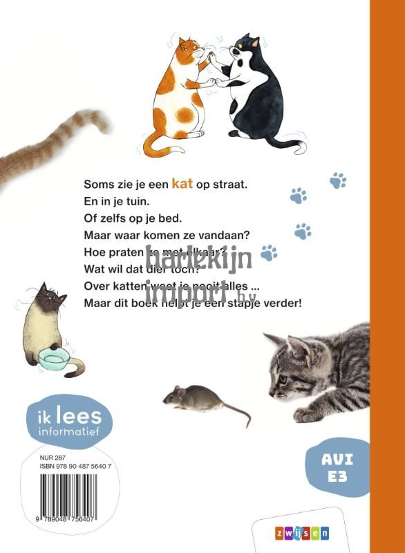 Soms zie je een kat op straat. En in je tuin. Of zelfs op je bed. Maar waar komen ze vandaan? Hoe praten ze met elkaar? Wat wil dat dier toch? Over katten weet je nooit alles … Maar dit boek helpt je een stapje verder! Je hebt katten die de hele dag miauwen. Of die juist muisstil zijn. De ene kat deelt graag kopjes uit en de ander zit altijd onder de bank. Wat denkt dat dier toch? Wat wil een kat? Lees in dit boek over kattenpraat, het gedrag en de wilde familie van de kat én doe de test. Beginnende lezers met een hart voor katten weten na het lezen van dit boek op AVI E3-niveau uit de serie ik lees informatief alles over deze eigenzinnige dieren. Dankzij de interessante informatie, verrassende weetjes en grappige moppen en raadsels. Naast de leerzame tekst staat dit boek ook nog eens vol met aansprekende foto’s en mooie illustraties.