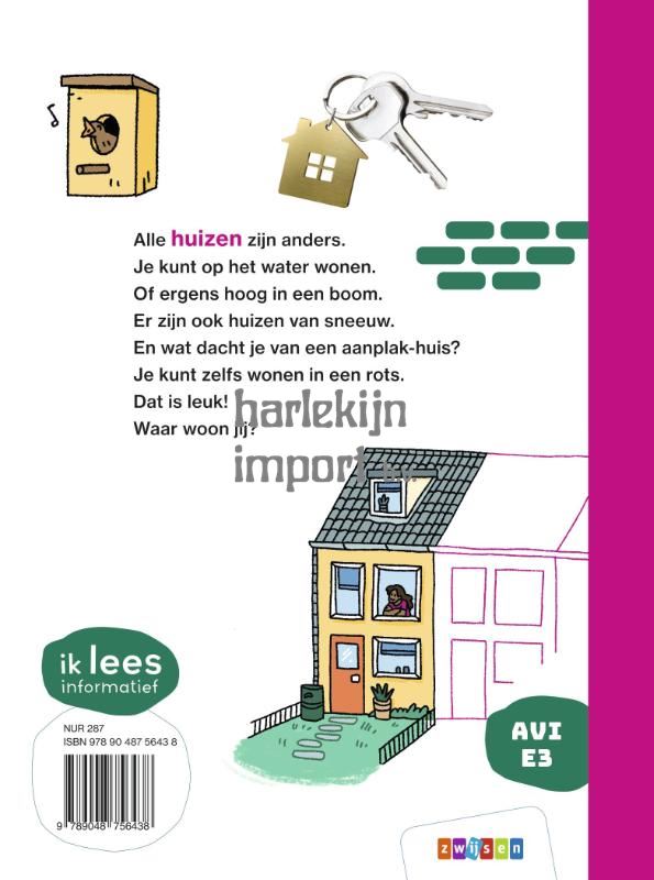 Alle huizen zijn anders. Je kunt op het water wonen. Of ergens hoog in een boom. Er zijn ook huizen van sneeuw. En wat dacht je van een aanplak-huis? Je kunt zelfs wonen in een rots. Dat is leuk! Waar woon jij? In dit leuke informatieve boek duiken beginnende lezers in de wereld van huizen. Van iglo tot woonboot en van flat tot boerderij, er zijn allerlei soorten plekken waar je kunt wonen. Hoe worden huizen gebouwd? Waar vind je ze? En wat als je geen huis hebt? Je leest er alles over in Heel veel huizen. De heldere illustraties, kleurrijke foto’s, leuke weetjes én grappige raadsels nodigen uit tot lezen en ontdekken. Dit AVI E3-boek uit de serie ik lees informatief is geschreven voor kinderen van 6 à 7 jaar die graag leeskilometers maken en op een leuke manier meer over huizen willen weten.