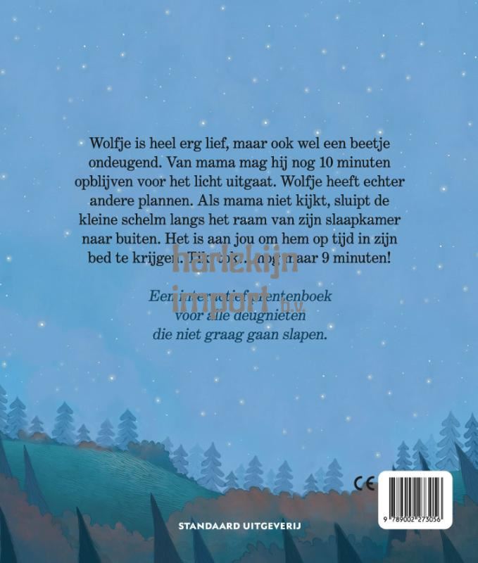 Het is aan de lezer om Wolfje zover te krijgen om op tijd in bed te liggen. Tik Tok, nog maat 9 minuten.