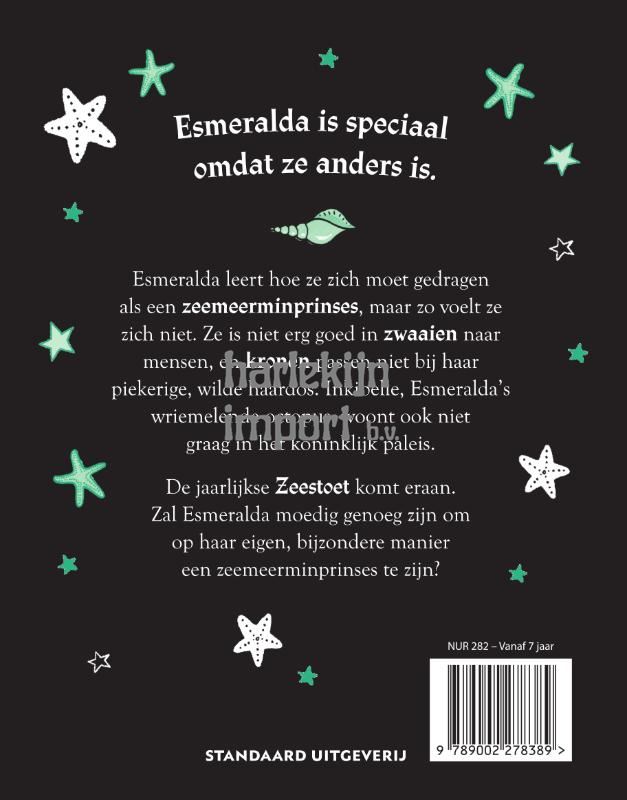 Nieuwe spin-off van de reeks Isabella Maan, over de kleine zeemeermin Esmeralda. Esmaralda's ouders zijn gescheiden, en omdat haar moeder hertrouwd is met de koning van Schelpenstad, is Esmeralda een zeemeerminnenprinses geworden. Dat vindt ze best moeilijk, zeker als blijkt dat ze de nakende Zeestoet niet mag bijwonen in het publiek met haar vriendinnen, maar mee moet rijden in de koninklijke koets en allerlei verplichtingen heeft… Hoe kan Esmeralda trouw blijven aan zichzelf zonder haar familie teleur te stellen?