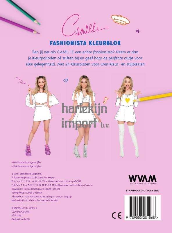 Een kleurboek voor echte fans van CAMILLE! Ben jij net als CAMILLE een echte fashionista? Neem er dan je kleurpotloden of stiften bij en geef haar de perfecte outfit voor elke gelegenheid. Met 24 kleurplaten voor uren kleur- en stijlplezier!