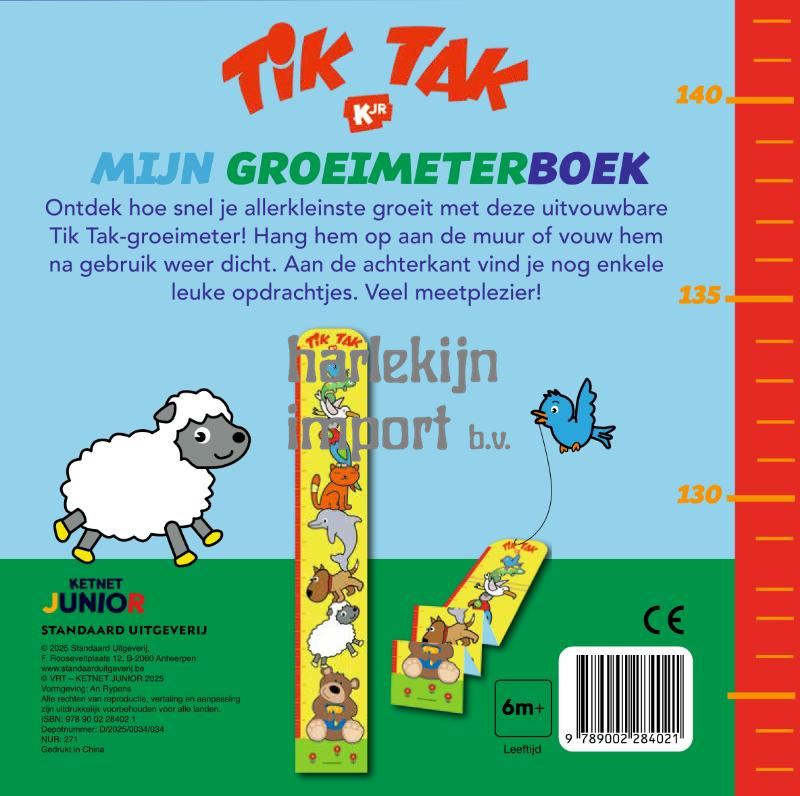 Ontdek hoe snel je allerkleinste groeit met deze uitvouwbare Tik Tak-groeimeter! Hang hem op aan de muur of vouw hem na gebruik weer dicht. Aan de achterkant vind je nog enkele leuke opdrachtjes. Veel meetplezier!