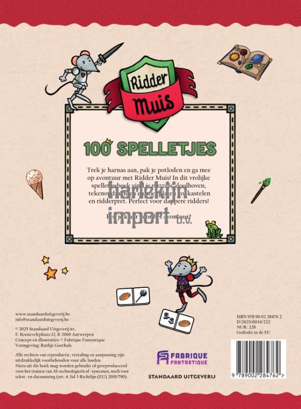 Speel je mee met Draak en Ridder Muis? In dit dikke boek van Ridder Muis vind je 100 leuke en gevarieerde spelletjes op kleutermaat. Verschillen zoeken, over de stippellijn gaan, eenvoudige puzzels oplossen … Goed voor uren leerzaam speelplezier met Ridder Muis!