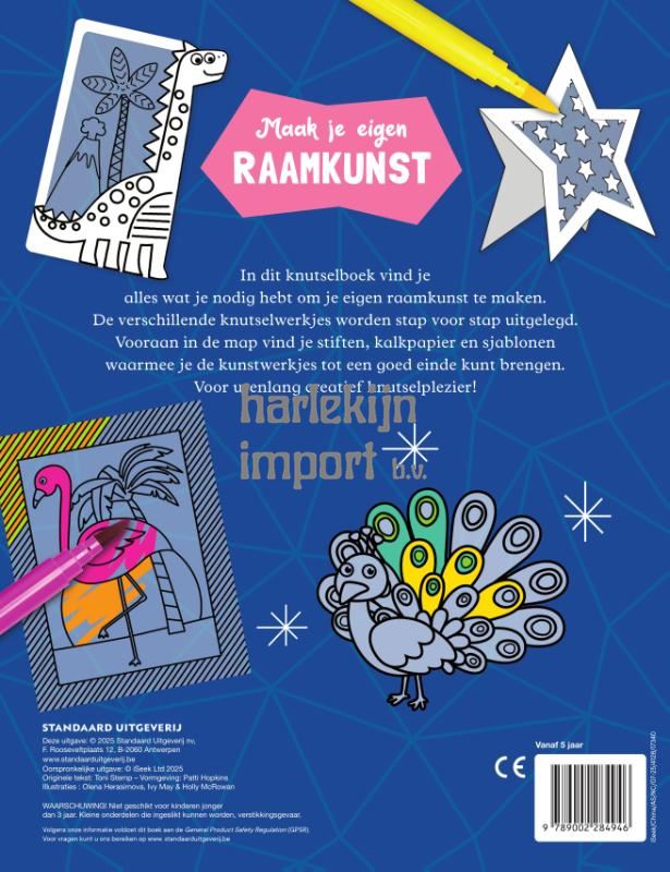 In dit knutselboek vind je alles wat je nodig hebt om je eigen raamkunst te maken.De verschillende knutselwerkjes worden stap voor stap uitgelegd.Vooraan in de map vind je stiften, kalkpapier en sjablonen waarmee je de kunstwerkjes tot een goed einde kunt brengen.Voor urenlang creatief knutselplezier!