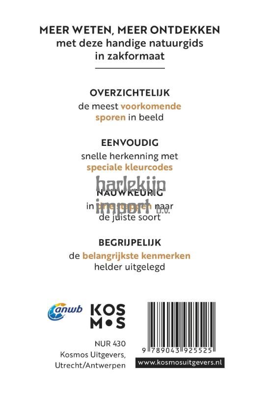 De ‘ANWB Basis natuurgids – Diersporen’ staat boordevol informatie voor het herkennen van sporen van wilde dieren. Kenmerken van ruim 90 prenten, loopsporen, holen, nesten, vraatsporen, uitwerpselen en braaksporen zijn opgenomen in deze compacte zakgids. Door de gedetailleerde foto’s zijn in één oogopslag alle opvallendste kenmerken terug te vinden. De indeling op kleurcodes maakt het zoeken supereenvoudig. Door het pocketformaat makkelijk mee te nemen tijdens elke natuurwandeling. Kortom, een beknopte gids met complete inhoud; ideaal om erachter te komen welke dieren jouw pad hebben bewandeld!