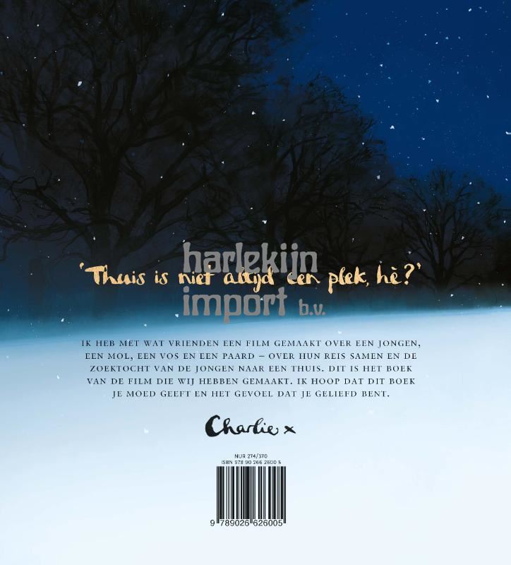 In ‘De jongen, de mol, de vos en het paard – het geanimeerde verhaal’ van Charlie Mackesy gaat een nieuwsgierige jongen op zoek naar een thuis. Onderweg ontmoet hij een wijze mol, een bedachtzame vos en een krachtig paard, en dat is het begin van hun vriendschap. De grote, full colour illustraties brengen de karakters tot leven, waardoor je in hun wereld stapt. De illustraties zijn gebaseerd op de BBC animatiefilm van ‘De jongen, de mol, de vos en het paard’. Het verhaal is met liefde vertaald door Arthur Japin vanuit het origineel ‘The Boy, the Mole, the Fox and the Horse – The Animated Story’. Een prachtig verhaal dat ons allemaal thuis brengt. ‘Ik hoop dat dit boek je moed geeft en het gevoel dat je geliefd bent.’ – Charlie Mackesy