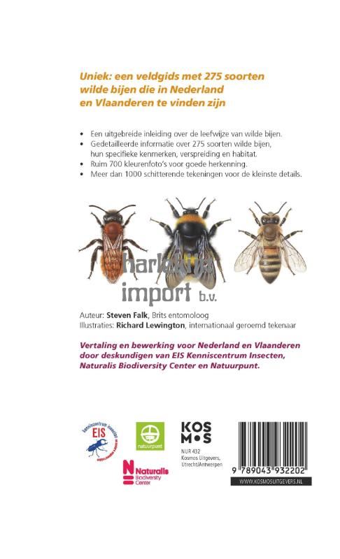 Deze veldgids over bijen van Steven Falk en Richard Lewington is de meest complete determinatiegids over de 275 bijensoorten die leven in Nederland en Vlaanderen. Het boek heeft een uitgebreide inleiding over de leefwijze van wilde bijen, het herkennen en het bestuderen ervan. Bovendien wordt het herkennen van de verschillende bijensoorten vergemakkelijkt door de ruim 700 kleurenfoto’s en uitgebreide informatie over specifieke kenmerken, verspreiding en habitat. Het boek bevat meer dan 1000 prachtige illustraties van de beroemde natuurtekenaar Richard Lewington. Kortom, een onmisbaar boek voor iedere bijenliefhebber. Vertaling en bewerking voor Nederland en Vlaanderen door deskundigen van EIS Kenniscentrum Insecten, Naturalis Biodiversity Center en Natuurpunt.