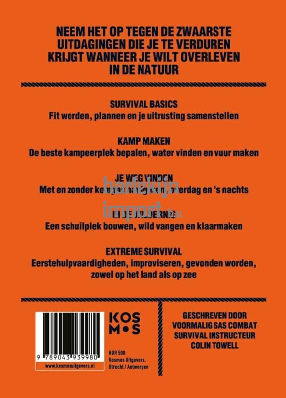 In Het Survival Handboek deelt voormalig SAS Combat Survival-instructeur Colin Towell alles wat je moet weten om te overleven in de wildernis. Van de basisprincipes zoals water vinden, vuur maken en onderdak bouwen, tot geavanceerde technieken voor navigatie, EHBO en noodsignalen. Dit handboek biedt praktische overlevingstips voor extreme situaties: wat doe je als je verdwaalt in de jungle, op zee ronddrijft of oog in oog staat met wilde dieren? Met heldere instructies, illustraties en stap-voor-stap uitleg is dit boek een onmisbare gids voor outdoorliefhebbers, survivalexperts en avonturiers. Leer hoe je: Eetbare planten herkent en voedsel vindt Effectief een vuur aansteekt en een schuilplaats bouwt Eerste hulp toepast in noodsituaties Jezelf navigeert met en zonder kompas Overleeft in extreme omgevingen zoals woestijnen, bergen en bossen Of je nu een doorgewinterde avonturier bent of gewoon goed voorbereid wilt zijn, Het Survival Handboek geeft je alle kennis die je nodig hebt om in elke situatie te overleven.