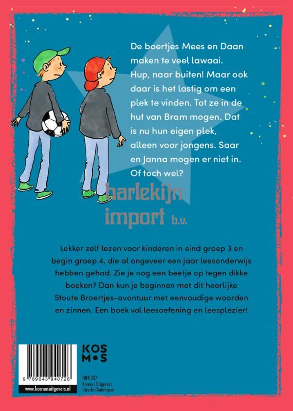 Leren lezen is nog leuker met de Stoute Broertjes! Daarom zijn er nu drie originele Stoute Broertjes-titels van oplopend niveau: ‘Ik lees met de Stoute Broertjes’: voor de allerjongste lezers in groep 2 en begin groep 3 die woorden en klanken leren herkennen. ‘Samen lezen met de Stoute Broertjes’: voor beginnende lezers die een aantal maanden leesonderwijs hebben gehad. ‘Lekker lezen met Stoute Broertjes’: voor kinderen die al ongeveer een jaar leesonderwijs hebben gehad. Je kent Daan en Mees misschien als de buurjongens van de Zoete Zusjes Saar en Janna. Nu kunnen ook de allerjongste lezers genieten van de avonturen van de Stoute Broertjes. Met in totaal maar liefst 144 bladzijden leesplezier zullen kinderen in groep 2 en 3 kunnen beginnen met het herkennen en lezen van de eerste letters, woordjes en zinnen. Eerst samen, en dan zelf! Natuurlijk zijn de verhalen weer opgevrolijkt met de leukste illustraties van Iris Boter. In het derde boekje, 'Lekker lezen met de Stoute Broertjes, kunnen kinderen die al ongeveer een jaar leesonderwijs hebben gehad lekker zelf lezen. Zijn de dikkere Zoete Zusjes-boeken nog net iets te moeilijk om zelf te lezen? Dan kun je beginnen met dit heerlijke avontuur met eenvoudige woorden en zinnen. Een boek vol leesoefening en leesplezier!