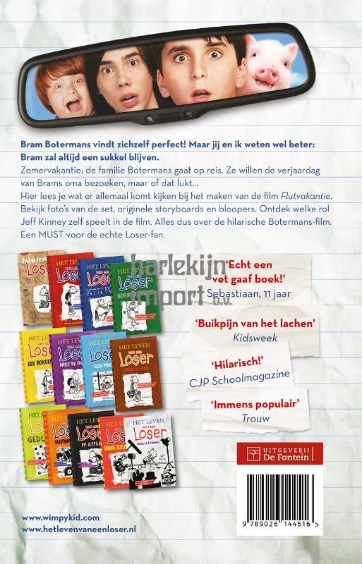 Zomervakantie: de familie Botermans gaat op reis. Ze willen de verjaardag van Brams oma bezoeken, maar of dat lukt? InAchter de schermen lees je wat er allemaal kwam kijken bij het maken van de filmFlutvakantie. Het boek bevat foto's van de set, originele storyboards, maar ook bloopers die de film niet hebben gehaald. En je ontdekt welke rol Jeff Kinney zelf speelt in de film. Alles over deze hilarische Bram Botermans-film dus. Een MUST voor elke Loser-fan.