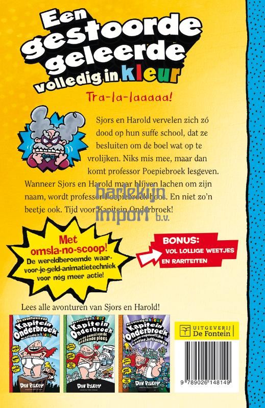 <i>Kapitein Onderbroek en het penibele plan van professor Poepiebroek</i> is het vierde deel in de supergrappige graphicnovelserie van Dav Pilkey. Volledig in kleur, voor kinderen vanaf 8 jaar. Bekend van de succesvolle Netflix-serie en film.<br>Sjors en Harold lijden aan O.S.S.S., het Ongelooflijk Saaie School Syndroom. Ze vervelen zich zó dood, dat ze besluiten om school wat op te vrolijken. Niks mis mee, toch? Totdat professor Poepiebroek ten tonele verschijnt. Hij is uitvinder en slimste mens van Nieuw Zwitserland, waar iedereen een gekke naam heeft en dus niemand dat raar vindt. Maar wanneer iedereen blíjft lachen om zijn naam, wordt professor Poepiebroek echt boos.