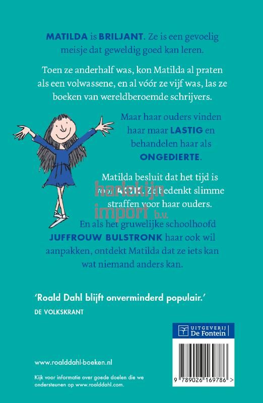Matilda is briljant. Ze kan geweldig goed leren. Toen ze anderhalf was kon Matilda al praten als een volwassene, met 3 jaar kon ze lezen, en al vóór ze 5 was, las ze boeken van wereldberoemde schrijvers als Dickens, Hemingway, Kipling en Steinbeck. Maar haar ouders vinden haar maar lastig en behandelen haar als een onderkruipsel. Matilda besluit zich eens goed kwaad te maken. Ze bedenkt heel slimme straffen voor haar ouders. En als het hoofd van de school, juffrouw Bulstronk, haar ook wil aanpakken, ontdekt Matilda dat ze iets heel bijzonders kan.‘Roald Dahl blijft onverminderd populair.’ – de Volkskrant‘Roald Dahl is de beste kinderboekenschrijver ter wereld.’ – VPRO-gids