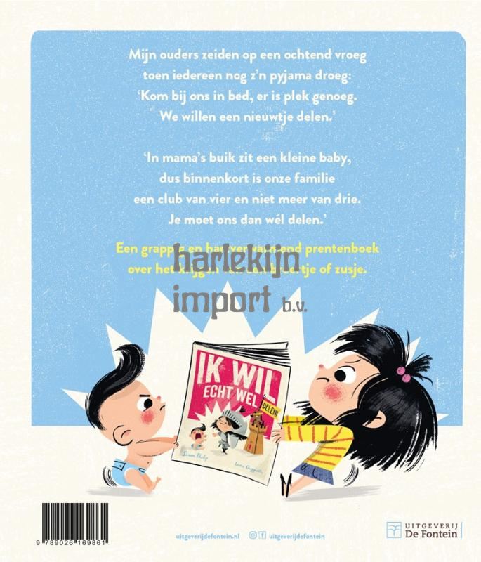 ‘Heerlijk grappig en ideaal voor alle kleintjes die op het punt staan een nieuw gezinslid te verwelkomen - Waterstones’ ‘De prachtig grappige illustraties van Lucia Gaggiotti in een gedurfd kleurenpalet geven echt de emotionele achtbaan van de hoofdpersoon en de geest van Simon Philip's tekst weer.’ - Goodreads Mijn ouders zeiden op een ochtend vroeg toen iedereen nog z’n pyjama droeg: ‘Kom bij ons in bed, er is plek genoeg. We willen een nieuwtje delen.’ ‘In mama’s buik zit een kleine baby, dus binnenkort is onze familie een club van vier en niet meer van drie. Je moet ons dan wél delen.’ Een grappig en hartverwarmend prentenboek over het krijgen van een broertje of zusje.